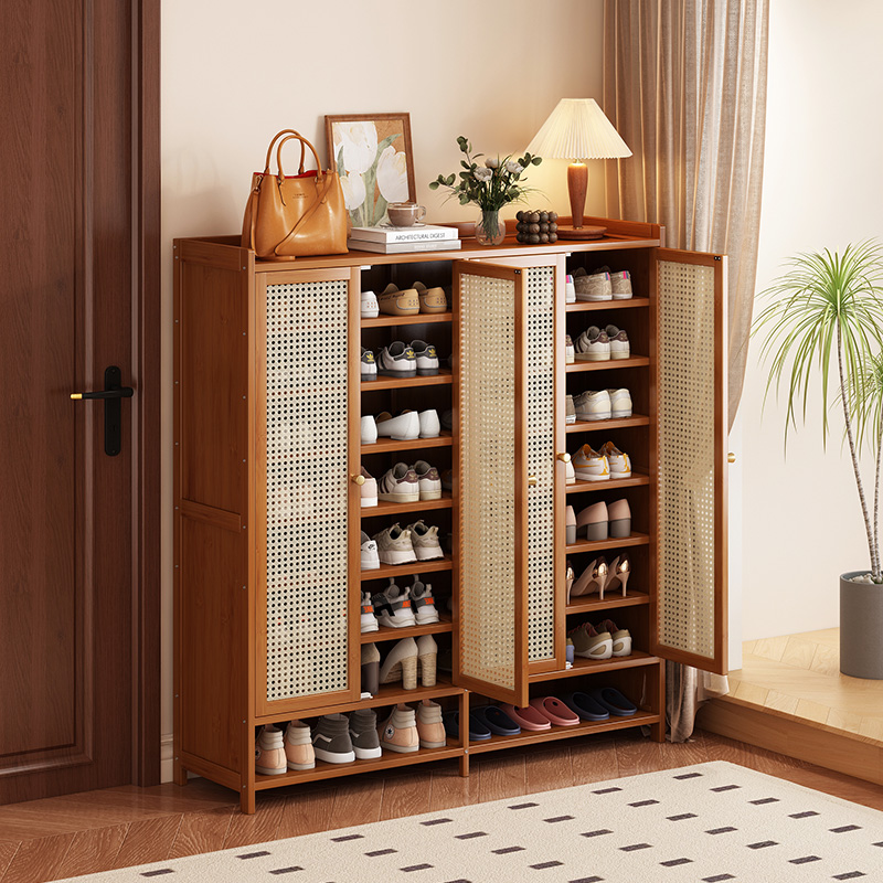 تعتمد الخزانة تصميمًا محكمًا مقاومًا للغبار مع أبواب خزانة قديمة من النوع المفصلي، والتي يمكن أن تمنع دخول الغبار والحطام بشكل فعال، مع الحفاظ على فجوات قابلة للتنفس لتحقيق التوازن بين مقاومة الغبار والتهوية، وتجنب رائحة الحذاء والرطوبة، والحفاظ على الأحذية جافة ونظيفة في جميع الأوقات. يوفر التصميم العلمي والمعقول متعدد الطبقات سعة كبيرة لتخزين أحذية العائلة بأكملها بشكل منظم في جميع الفصول. سواء كانت أحذية طويلة أو أحذية جلدية أو أحذية رياضية أو شباشب، يمكن تصنيفها ووضعها، مما يحل مشكلة فوضى المدخل تمامًا ويحافظ على مساحة المدخل مرتبة ومنظمة. يُظهر الشكل القديم بخطوط بسيطة البراعة في التفاصيل، ويجمع بين عملية التخزين والديكور المنزلي، مما يعزز نمط المنزل بسهولة.